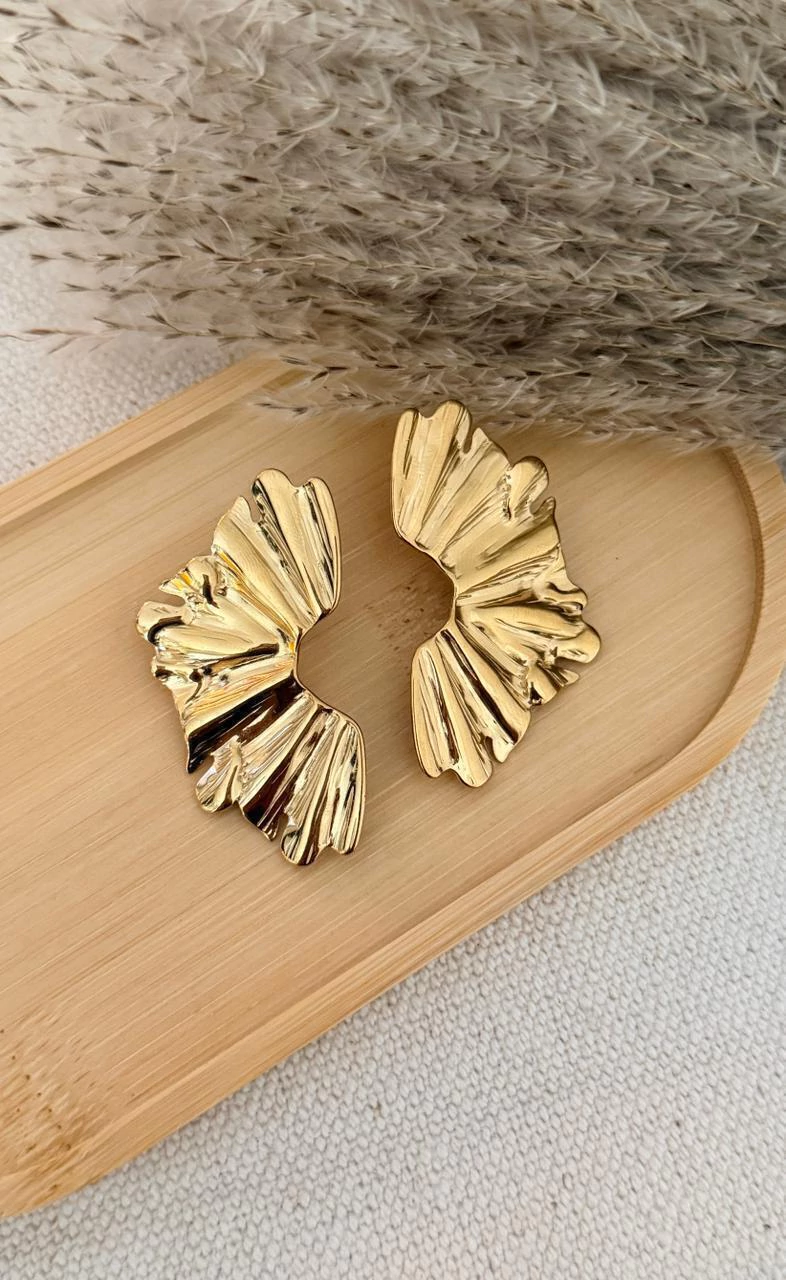 Aretes dorados medio circulo con textura